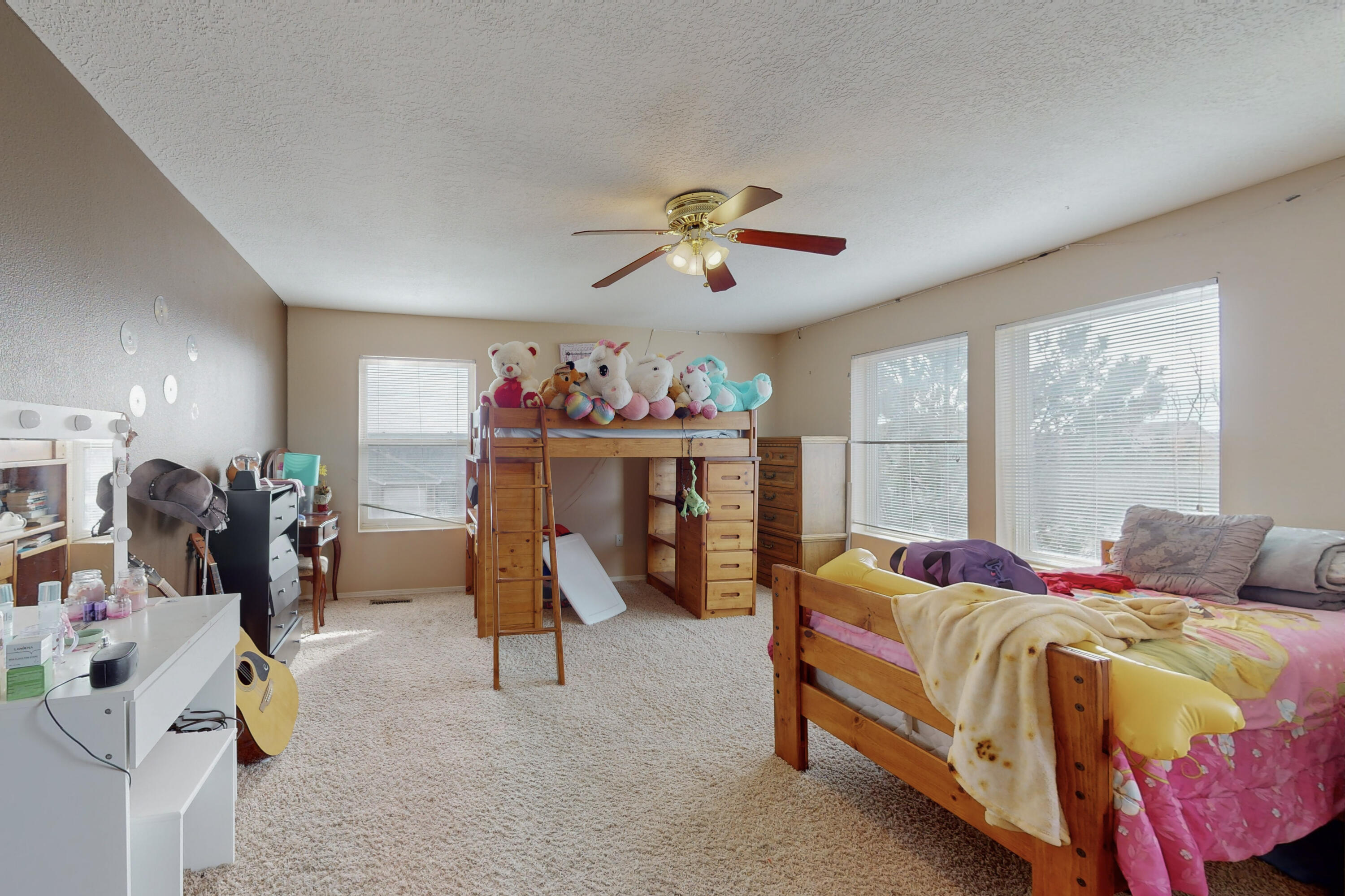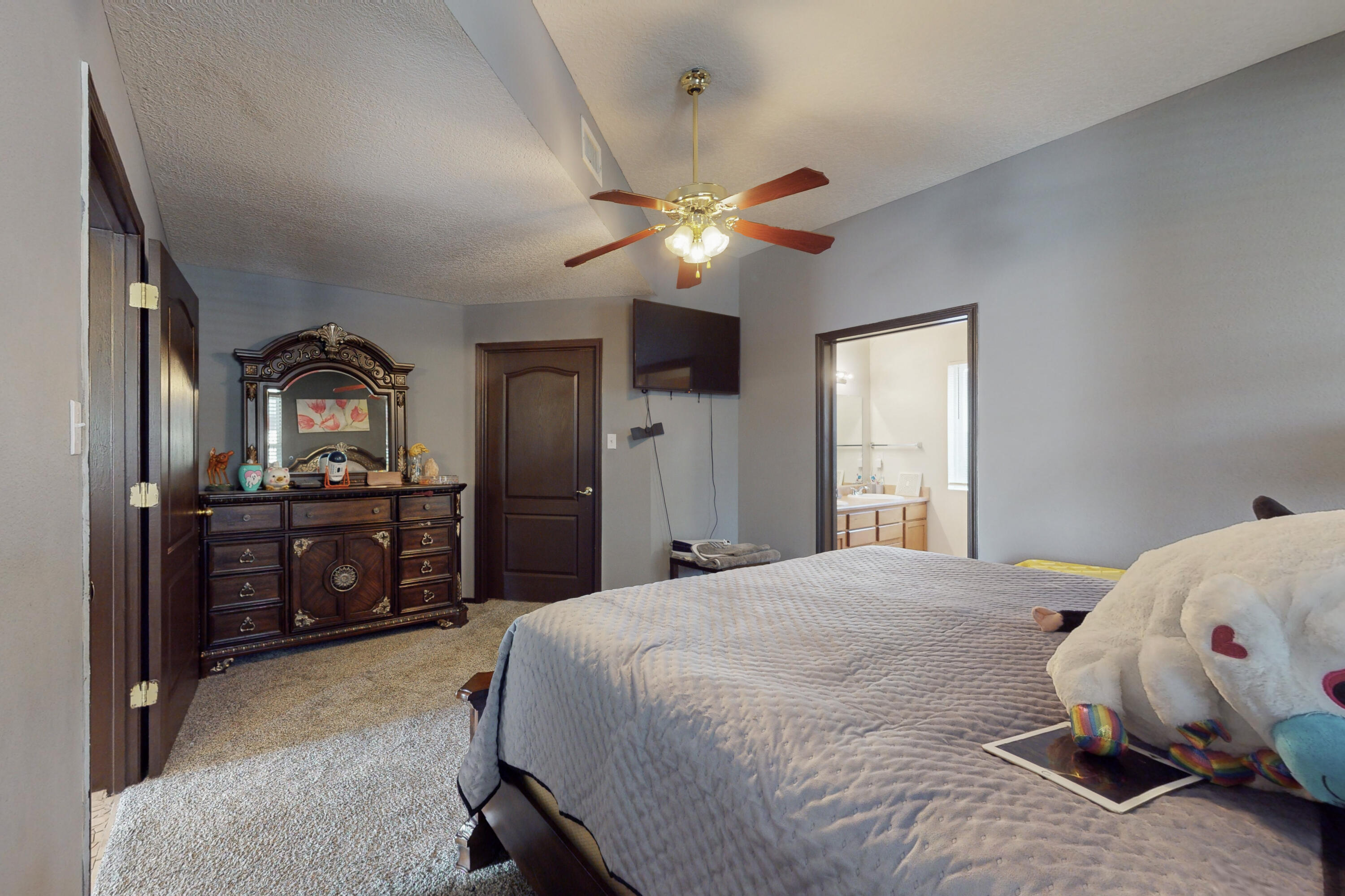 PRICED TO SELL FAST! Delightful 2 story, 4 BR's, 2.5 Baths, 2 car garage home on great corner lot with Unobstructed Mountain Views! Master Suite downstairs with Garden Tub/Shower. Tiled foyer invites you into the Light & Bright Living room that Flows into the Country Kitchen w/Beautiful maple cabinetry, Center Island & Cozy dining nook. Upstairs features 3 Bedrooms & full Bath plus Great Mountain Views. Step outside to the spacious Backyard. Relax on the enlarged covered patio. Enjoy the low maintenance yards. stroll up the wooden staircase to spectacular 20x20 view deck! Enjoy watching the beautiful NM sunsets Year Round! Offering credit for Carpet or use it toward Closing Cost, This Seller want to Make You a Deal! See this Today & Thank Yourself Tomorrow!