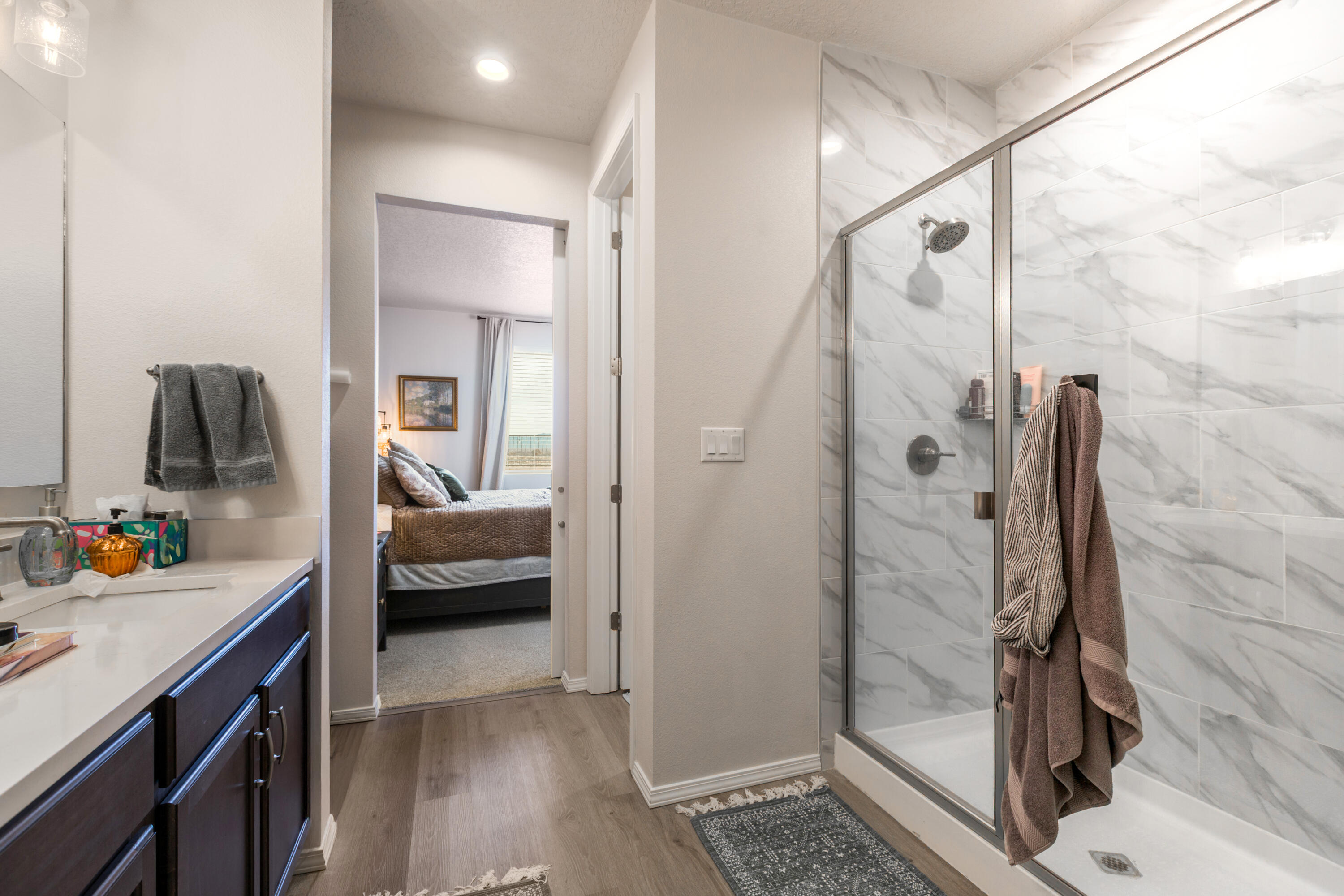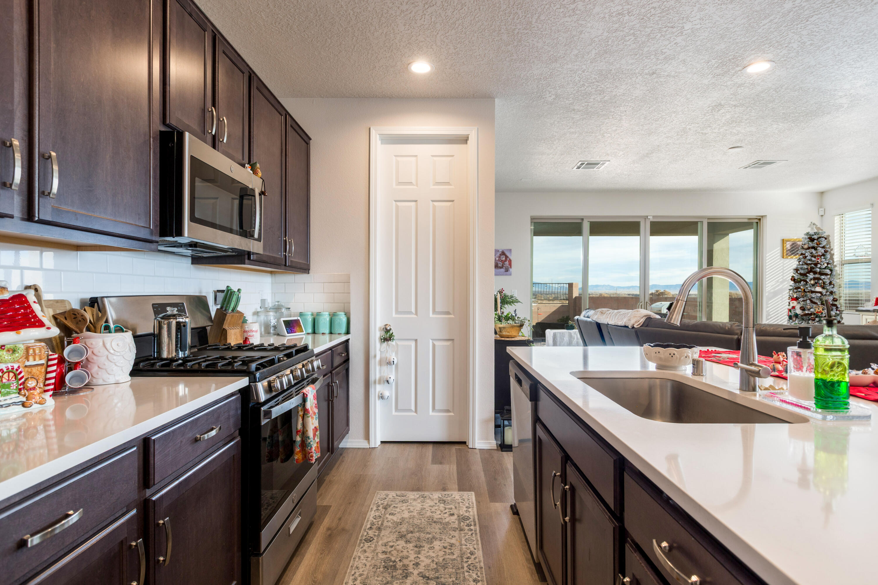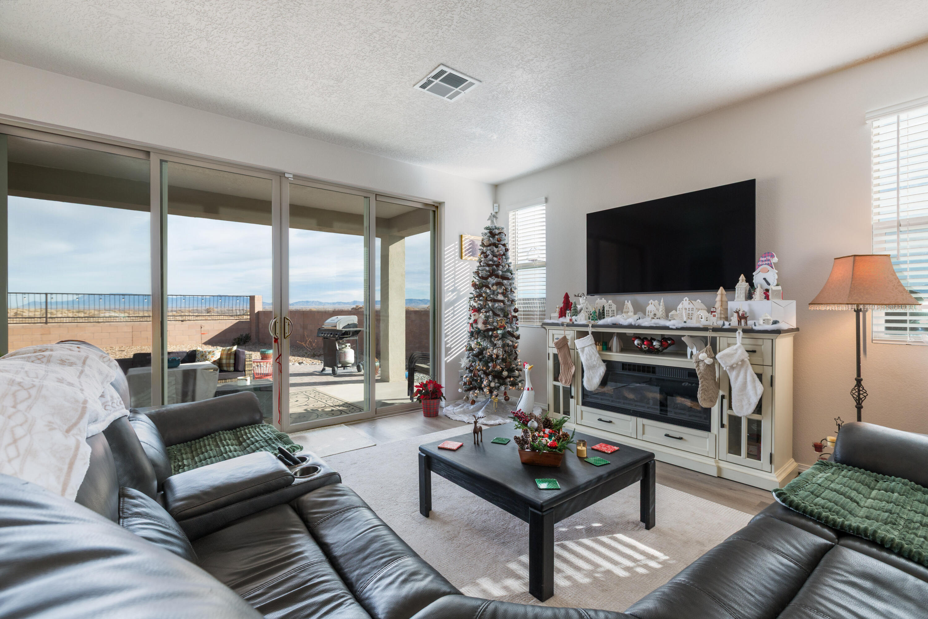 Discover this beautifully maintained 4-bedroom, 2-bathroom home situated on a desirable corner lot. The heart of the home is the open and airy kitchen, featuring a center island, walk-in pantry, and a dining area that seamlessly flows into the inviting great room. Center-meet sliding doors lead to the covered patio, creating an excellent indoor-outdoor living experience.The spacious primary bedroom offers an attached full bathroom with dual sinks and a generous walk-in closet. Quality finishes are found throughout the home, offering a clean and modern feel.Step outside to a landscaped backyard designed for relaxation and entertainment. Enjoy stunning mountain views as you unwind in this peaceful outdoor space. A Great Place to call Home!