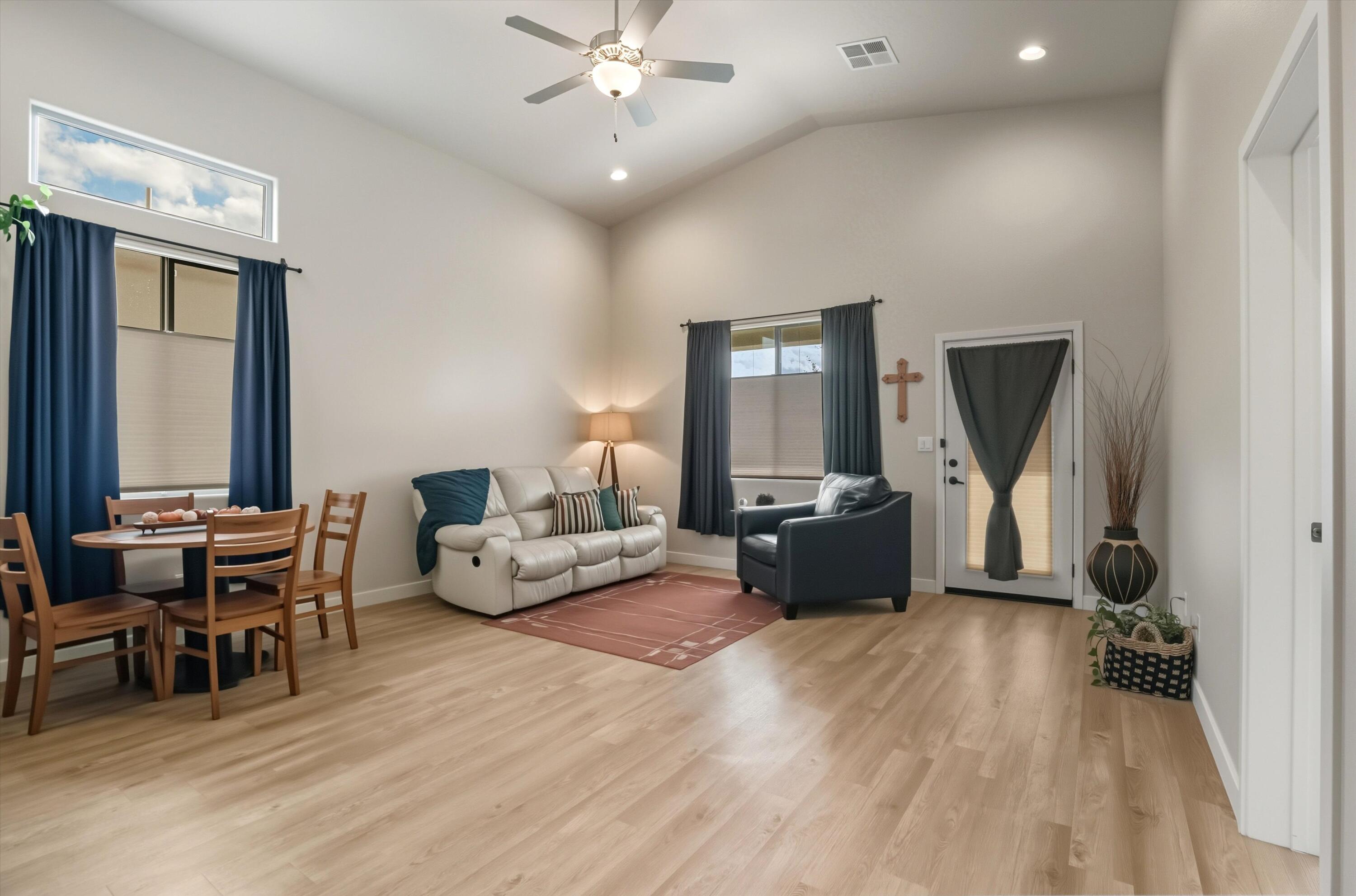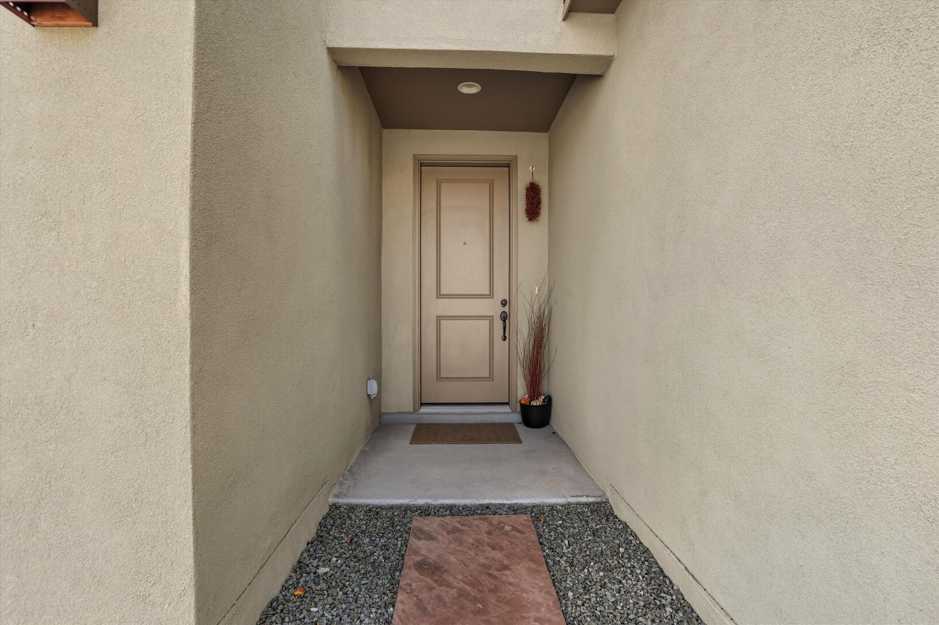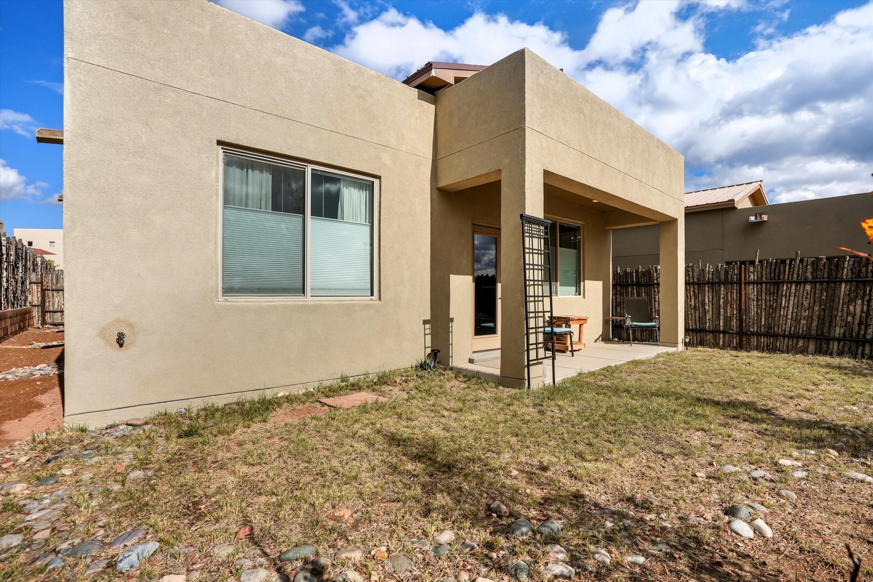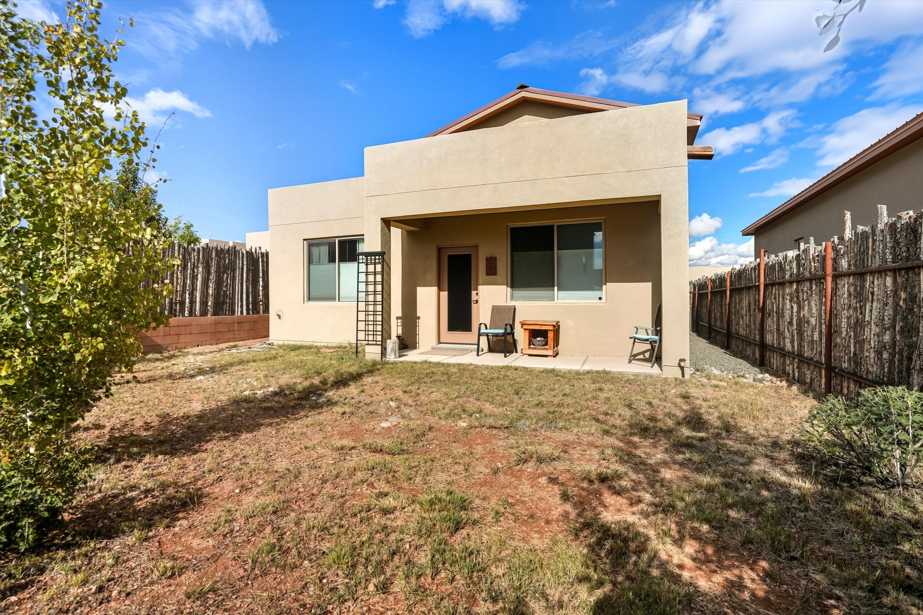 Tucked along the scenic western edge of Tierra Contenta, this move-in ready home captures the perfect balance of comfort, convenience, and Santa Fe charm. Built in 2021 and beautifully maintained by a single owner, it offers an open concept layout with high ceilings, luxury vinyl flooring, and modern finishes throughout. The kitchen features sleek maple cabinetry, granite countertops, and stainless steel appliances Take in a peaceful sunset and mountain views from the covered patio in the backyard. With direct access to walking trails, nearby parks, and easy commuting via 599, you'll love the lifestyle this location offers, whether you're heading to Santa Fe, Los Alamos, or Albuquerque.