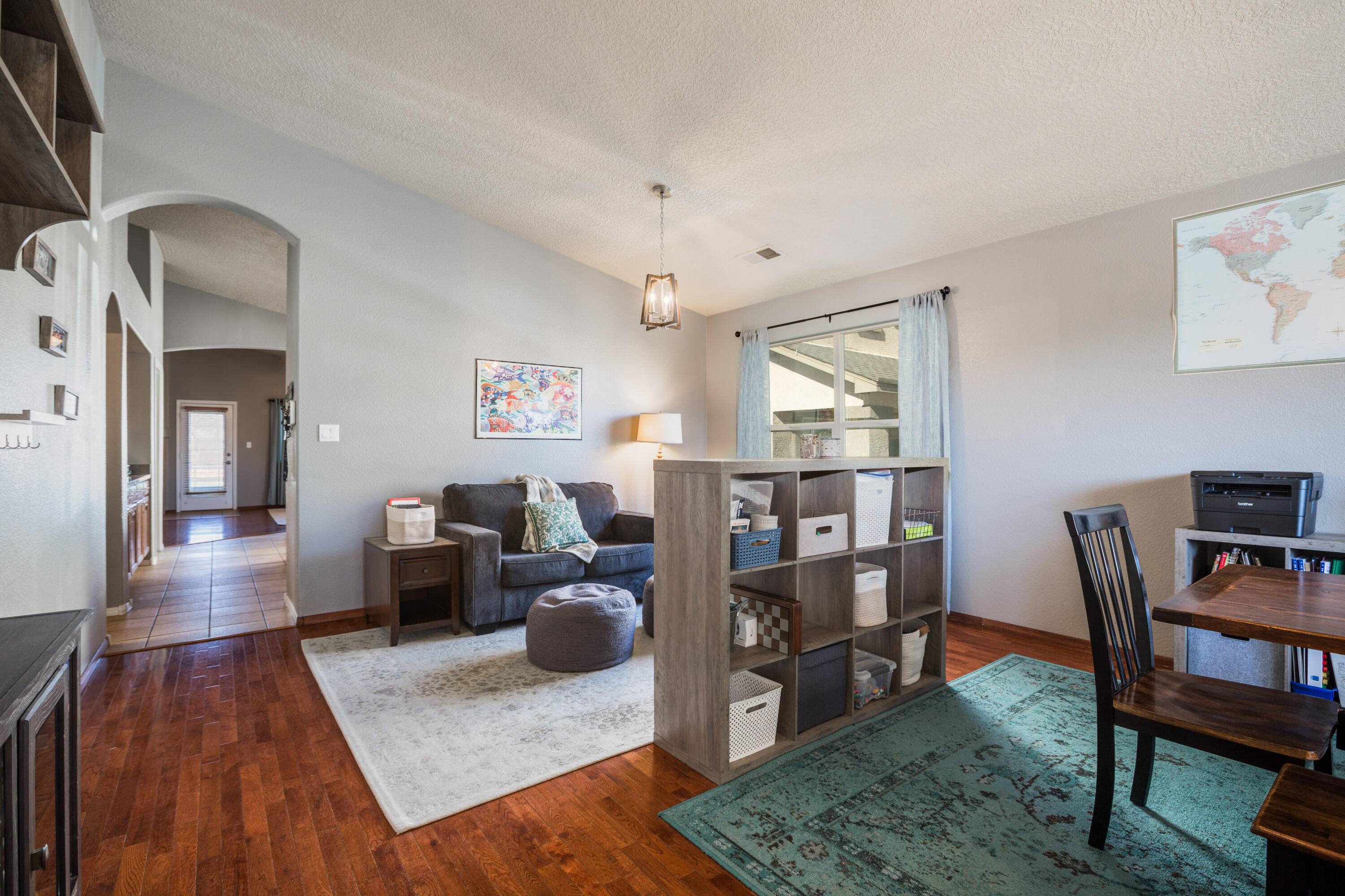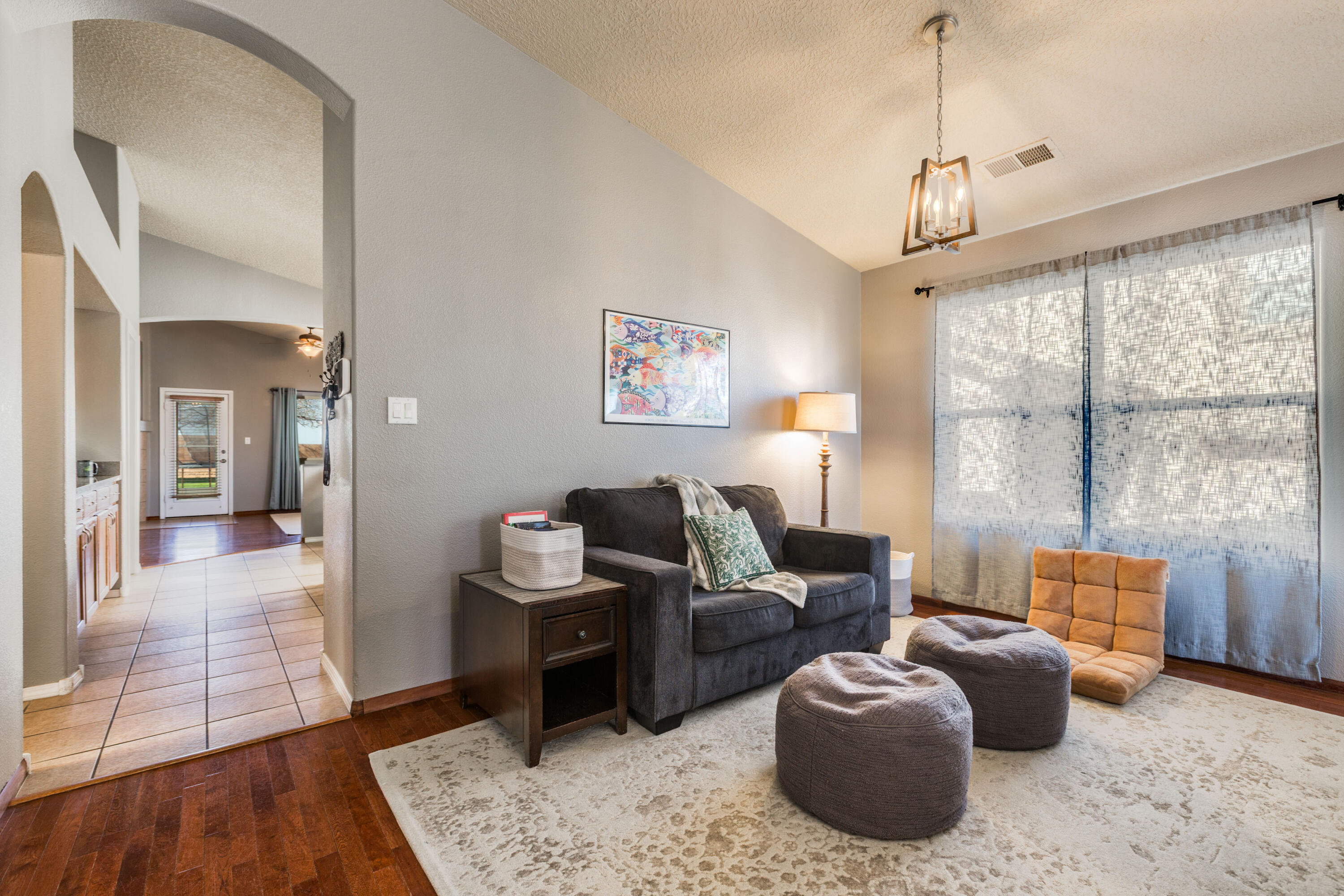 This fabulous single level 4 bedroom home is located in well maintained Ventana West. A sunny front porch greets you as you step into this open floor plan with gleaming hardwood floors. The large eat-in kitchen boasts upgraded stainless steel appliances, granite counter tops, pantry & plenty of counter space opens to a large family room with a gas log fireplace to enjoy on those cool evenings. The oversized master bedroom boasts a master bath w/ double sinks, walk in closet, garden tub & separate shower. Shed for storage. Sit on your patio as you enjoy the view. No neighbors behind! 3 car garage. Come enjoy the Ventana West lifestyle, surrounded by manicured parks & walking trails. New roof May 2025, Furnace Nov 2025, Water heater Dec 2025.