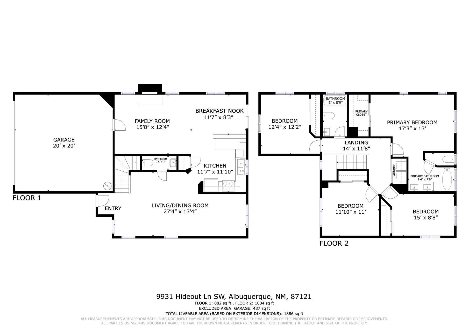 | TOTAL AREA | 1,886 Sq.Ft. |